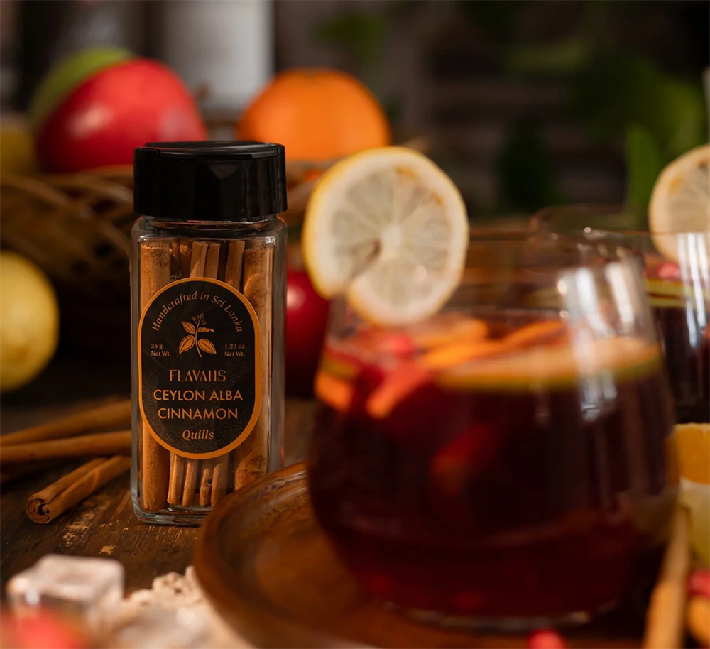 What gives this sangria its quiet magic isn’t just the wine or the fruit. It’s the cinnamon. And not just any cinnamon, but Alba. Unlike Cassia, the sharp and woody cinnamon found in most supermarket jars, Alba is soft, floral, and nuanced. It gently enhances the sweetness of the wine and fruit without ever overpowering them. While Cassia can become bitter when steeped too long, Alba remains round and fragrant, lending notes of honey, citrus blossom, and warmth.